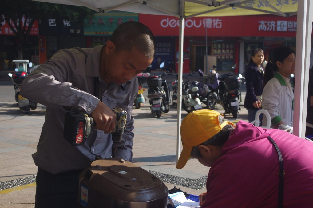 “小修小补”活动摊位上,师傅正为居民维修家电。通讯员供图