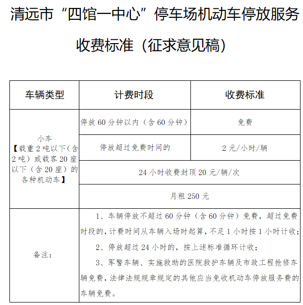 日前,清远市清城区发展和改革局发布公告,清远市“四馆一中心”停车场、清远市广清城际轨道洲心站停车场两个停车场拟收费。