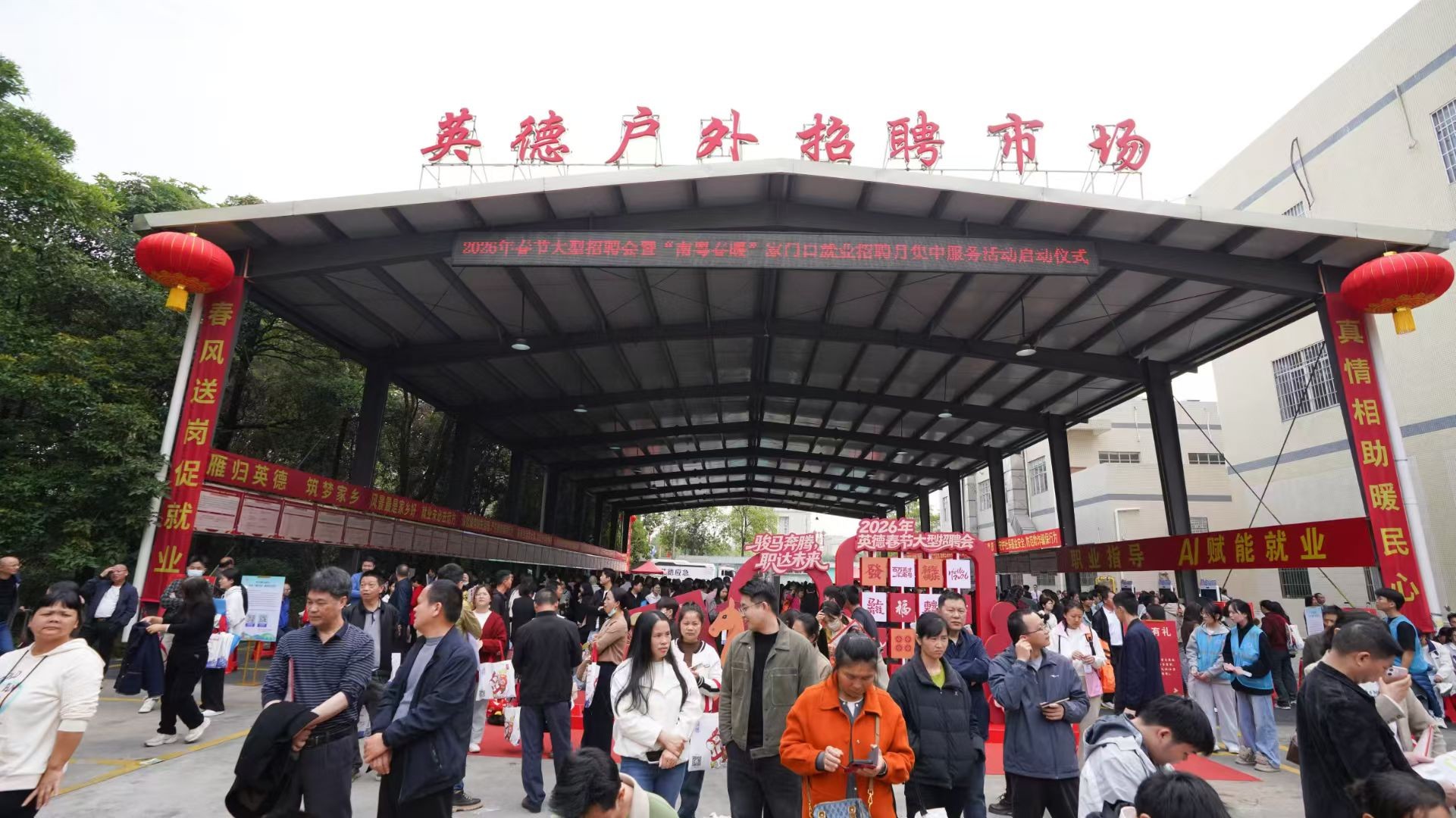 2月23日,英德市2026年春节大型招聘会暨“南粤春暖”家门口就业招聘月集中服务活动启动仪式,在英德市人社局广场户外招聘市场举办,招聘会进场人数达1.1万人次,线上浏览人数5.9万人次。