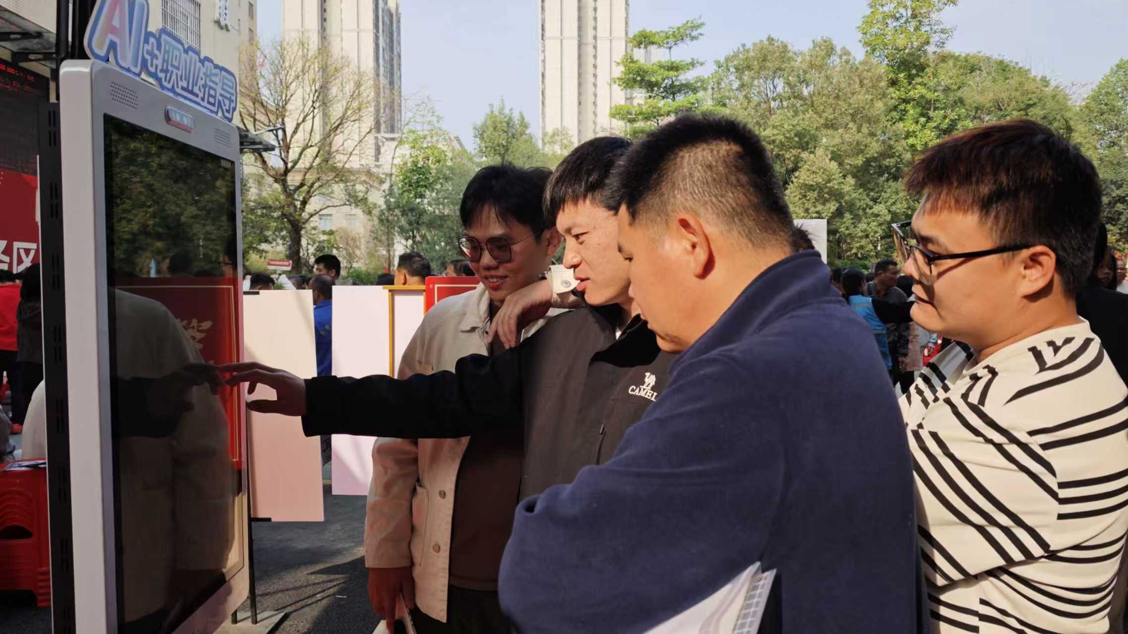 本次招聘会特设AI赋能就业区,成为现场亮点,吸引了众多排队等候测评的年轻求职者。