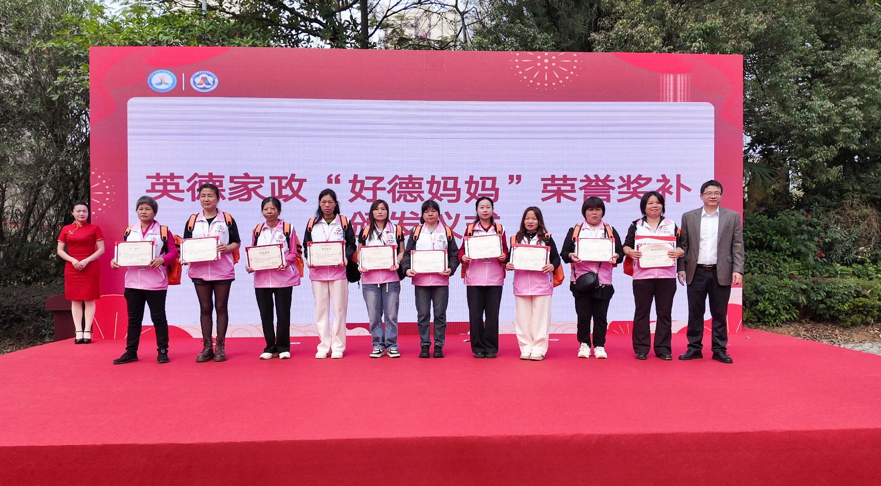 现场对20名家政“好德妈妈”代表颁发荣誉奖补。通讯员供图