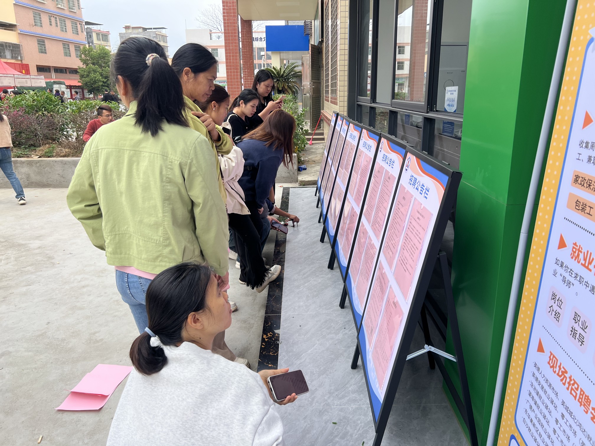 东华巡回招聘会现场,群众在就业驿站(零工市场)门口查看招聘岗位。通讯员供图