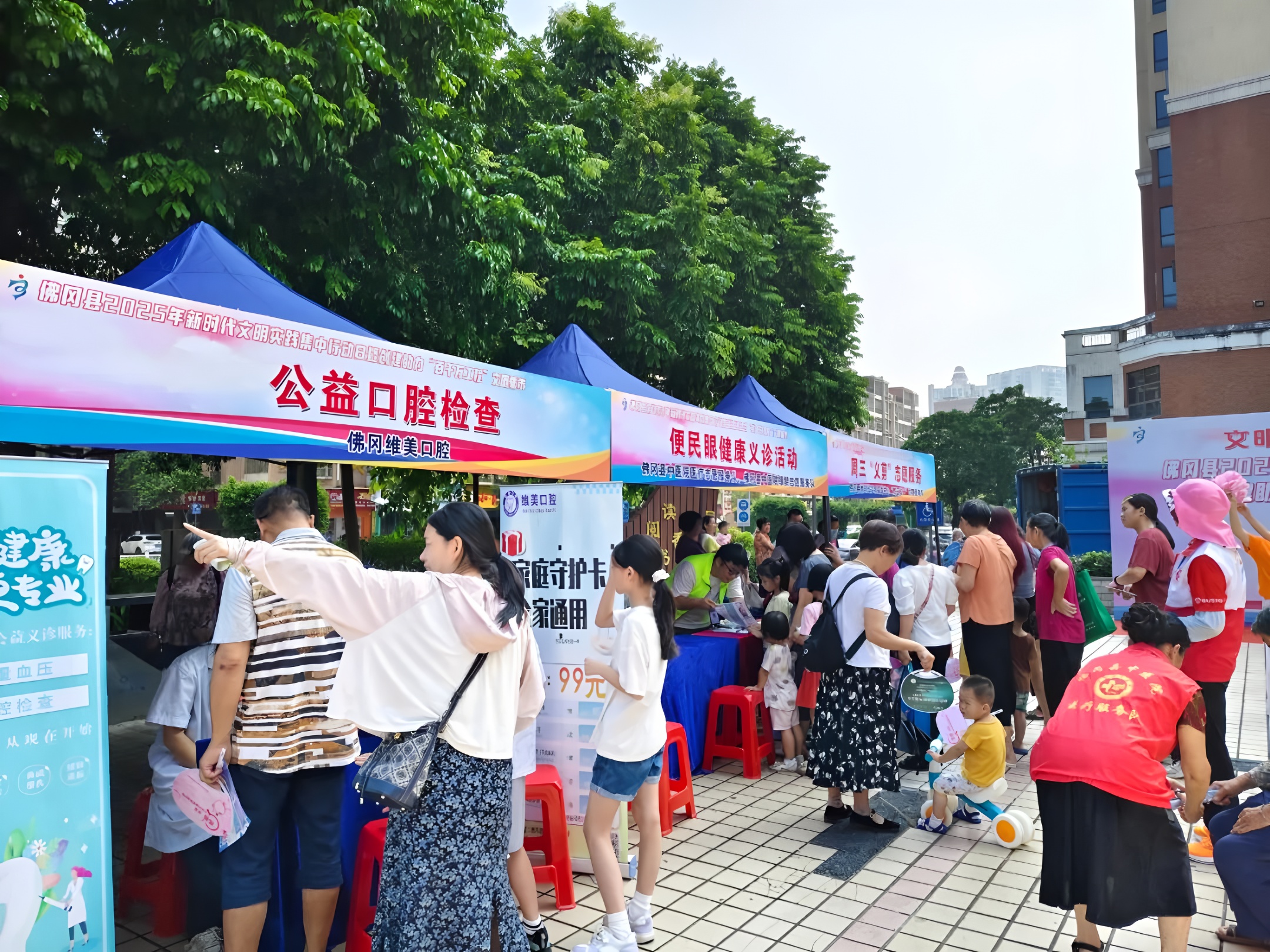 医疗健康与生活服务专区是现场的“人气高地”。佛冈县中医院的医疗团队携专业设备现场“坐诊”,免费为居民提供血压测量、视力检查、健康问诊等服务;相邻的口腔服务摊位前,医护人员耐心为群众检查口腔健康,普及护齿知识。爱心义剪区域更是排起小长队,理发师手法娴熟地为老人们修剪头发,理完发的老人看着镜子里清爽的发型,脸上满是笑意。“在家门口就能免费剪头发、看医生,这样的集市太贴心了!”刚体验完两项服务的李大爷,对着志愿者连连称赞。