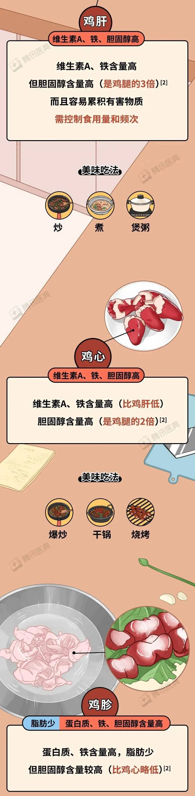 鸡虽然好吃,但如果用煎、炸、烤等方式烹调,不仅可能产生致癌物,还会有热量超标的风险,偶尔尝下就行,不建议多吃。