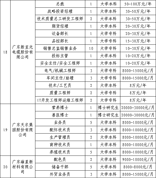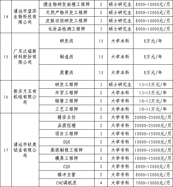 此次清远参会阵容多元,包含上市企业、国企、医疗机构、高校等,学历覆盖专科至博士全层次,适配不同层次人才需求。本次招聘会中,清远20家用人单位参与线下招聘,共提供岗位600个;另外21家则通过“粤就业”参与线上招聘。