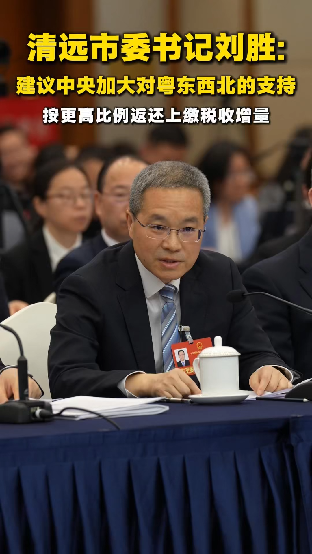 全国人大代表、清远市委书记刘胜:建议中央加大对粤东西北的支持 按更高比例返还上缴税收增量