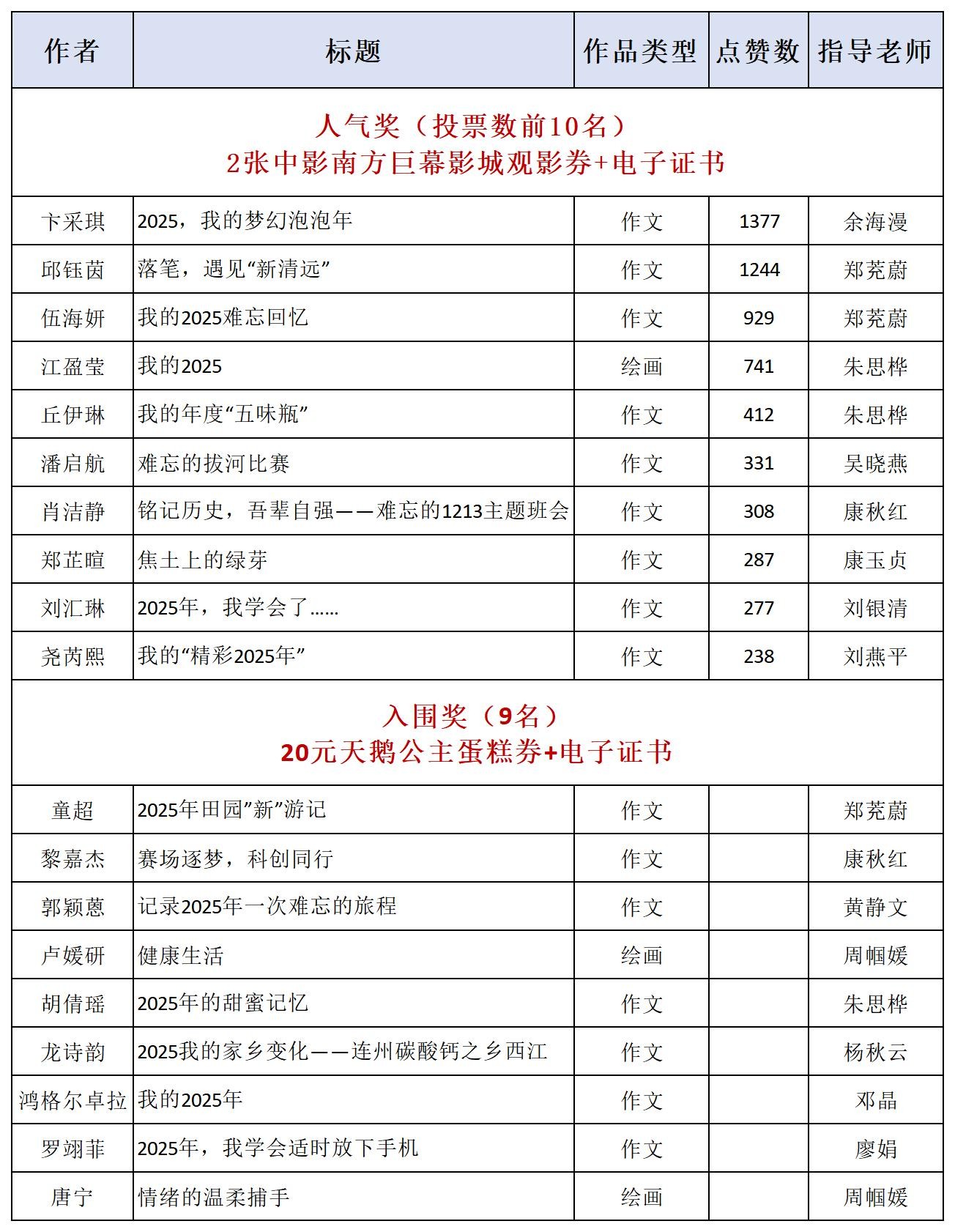 1.获得网络人气奖的同学,请于2025年12月31日或2026年1月4-9日前往清城区升平街28号清远日报社101室领奖。