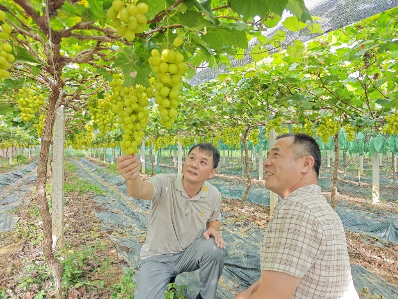 清晨的粤北山间薄雾未散,龙华葡萄园的易建强已在园中忙碌,托起一串“阳光玫瑰”端详果粒的糖霜与紧实度。这是他与工作队携手推进葡萄标准化种植的第三年,“达到最佳糖酸比才采摘,这是海关带来的国际标准教会我的”。2022年工作队入驻后,时任队长王彭军、驻村第一书记王益民针对种植户缺标准的痛点,发挥海关质量监管优势,联合省农科院制定首份广东省“葡萄+马铃薯”套种行业标准,还投入23万元安装补光灯破解低产难题。