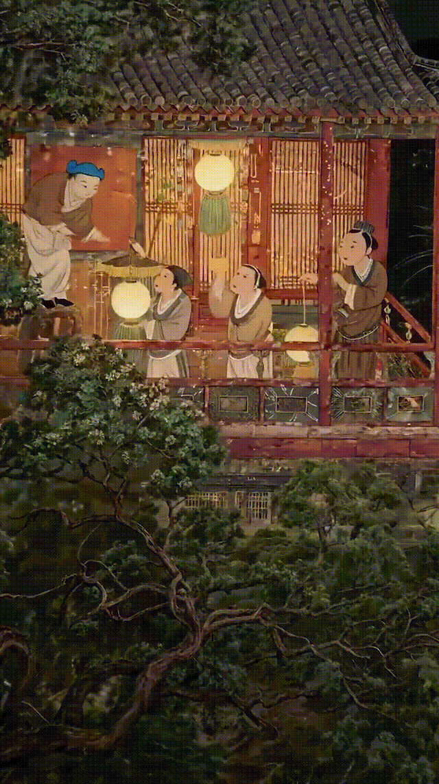 打开清代古画《岁朝欢庆图》