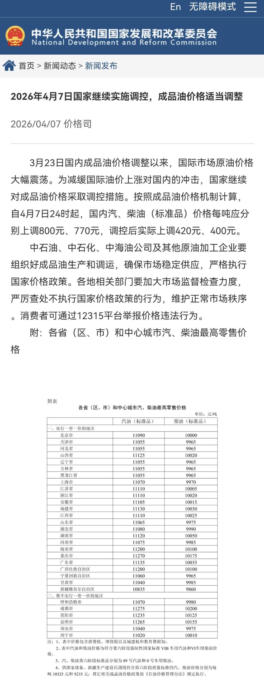 3月23日国内成品油价格调整以来,国际市场原油价格大幅震荡。为减缓国际油价上涨对国内的冲击,国家继续对成品油价格采取调控措施。按照成品油价格机制计算,自4月7日24时起,国内汽、柴油(标准品)价格每吨应分别上调800元、770元,调控后实际上调420元、400元。