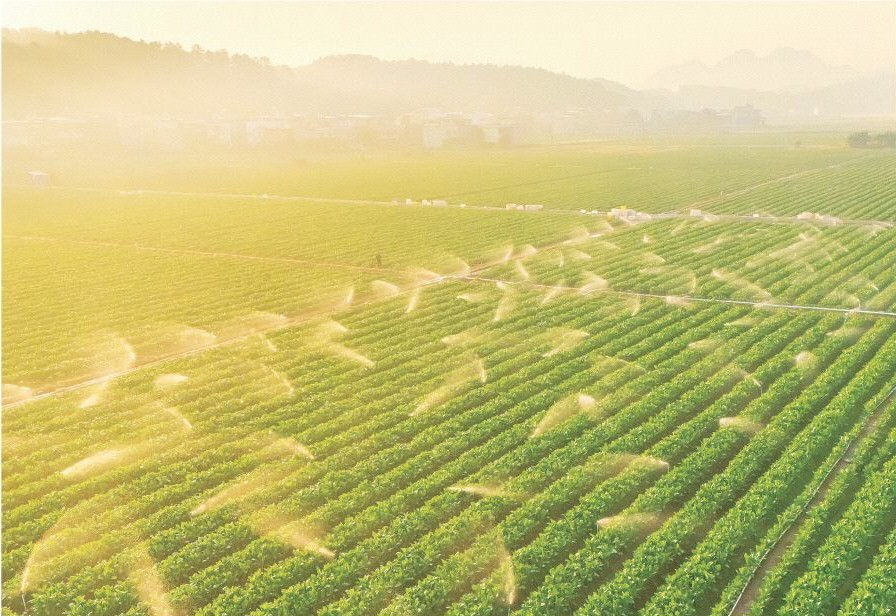 连州市西岸镇河田村连州菜心基地,喷洒系统正在工作。清远日报签约摄影师 罗敏 摄