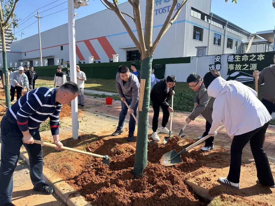 春风和煦,暖阳高照,植树现场一派热火朝天的劳动景象。大家热情高涨,分工协作,挥锹铲土、扶苗填坑、培土浇水,各个环节衔接有序、配合默契。经过一上午的辛勤劳动,20株仁面子树在园区道路旁稳稳扎根、迎风挺立,为园区增添了一抹新绿,也播撒下春天的希望。