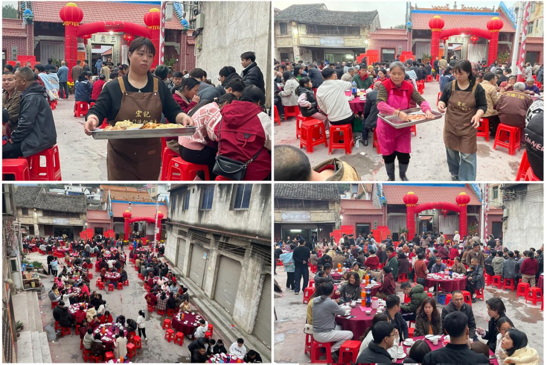 岭背村民宴请场景