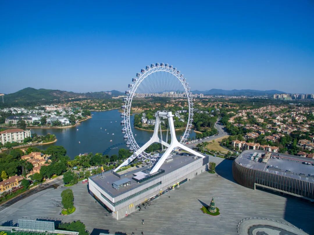 登上浪漫摩天轮,在高空中全景欣赏美林湖的湖光山色与现代城邦风貌,定格美好瞬间。