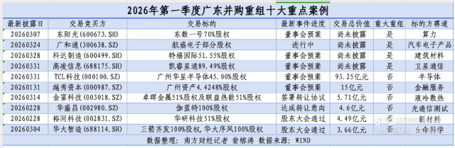 2026年第一季度,作为连续两年坐稳全国并购重组数量“头把交椅”的省份,广东资本市场并购重组热潮持续升温,无论是项目数量、交易规模还是产业协同价值,均交出了一份量质齐升的亮眼答卷。