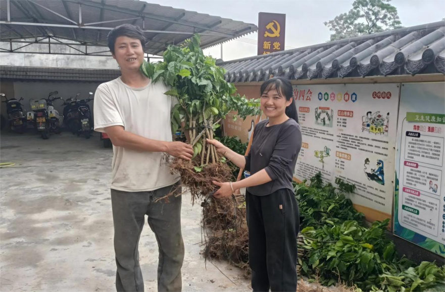 村里发起乡村绿化捐款活动,发动干部、企业人士、村民踊跃参与,实施“树苗到户、人人参与”行动,采购三角梅、凤凰树、紫花风铃、无核黄皮等苗木3012棵,免费发放给500余户村民自主种植,带动群众投工投劳1100余人次,让村民成为村容美化的参与者和受益者。