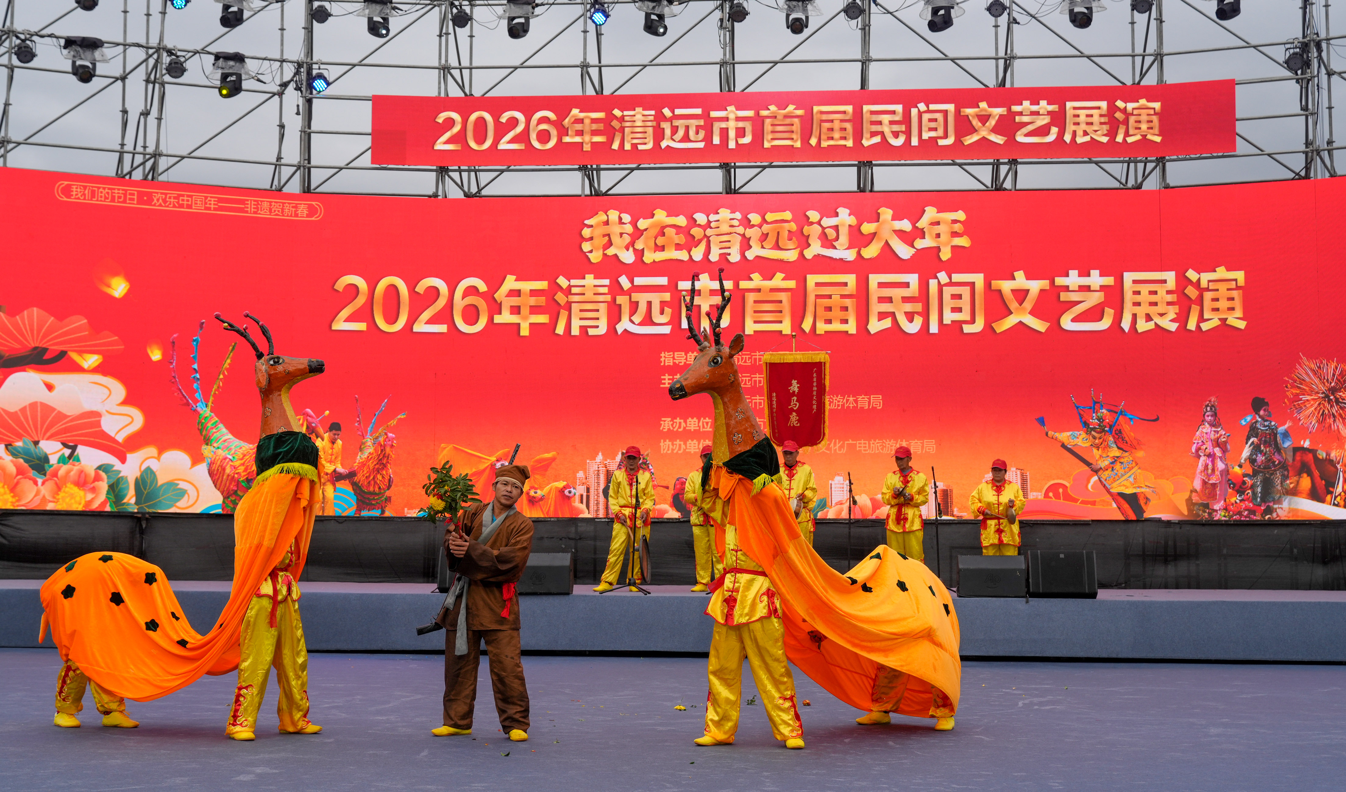 《舞马鹿》。3月2日,2026年清远市首届民间文艺展演在江滨公园演艺广场举行。清远日报记者 邱炜民 实习生李为 摄