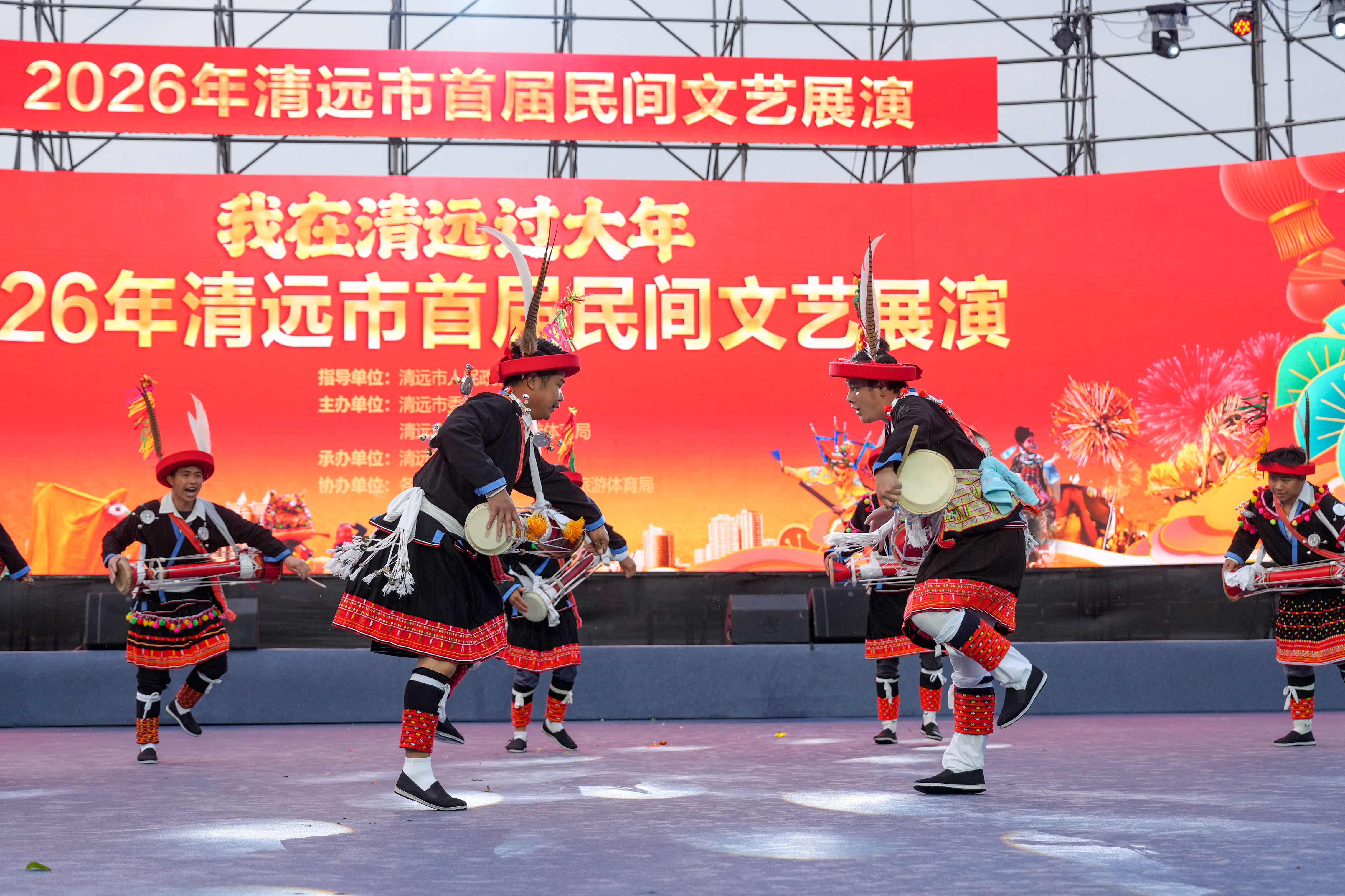 《欢乐长鼓舞》。3月2日,2026年清远市首届民间文艺展演在江滨公园演艺广场举行。清远日报记者 邱炜民 实习生李为 摄