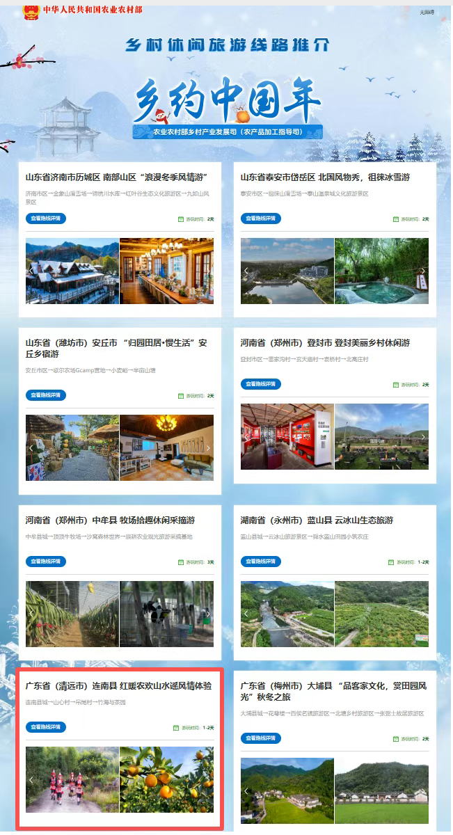 近日,农业农村部以“乡约中国年”为主题,发布53条冬季乡村休闲旅游精品线路以及144个精品景点。