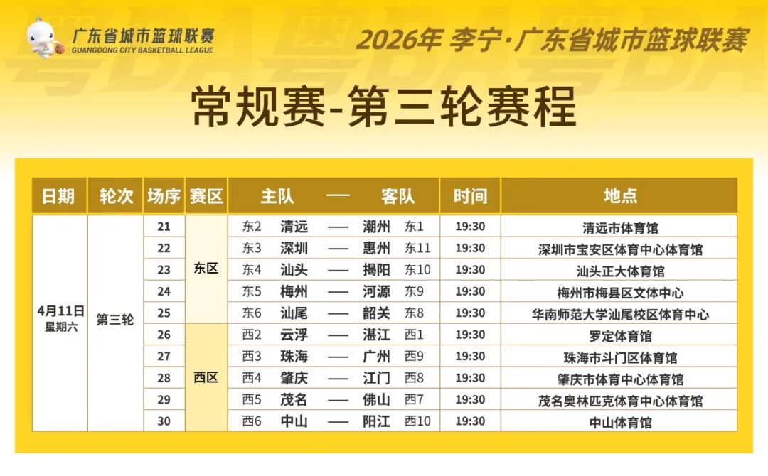 为切实保障运动员日常生活,尊重公序良俗,清明节期间不进行比赛。短暂休整后,粤BA常规赛第三轮于4月11日热血回归。期待与大家赛场相会。
