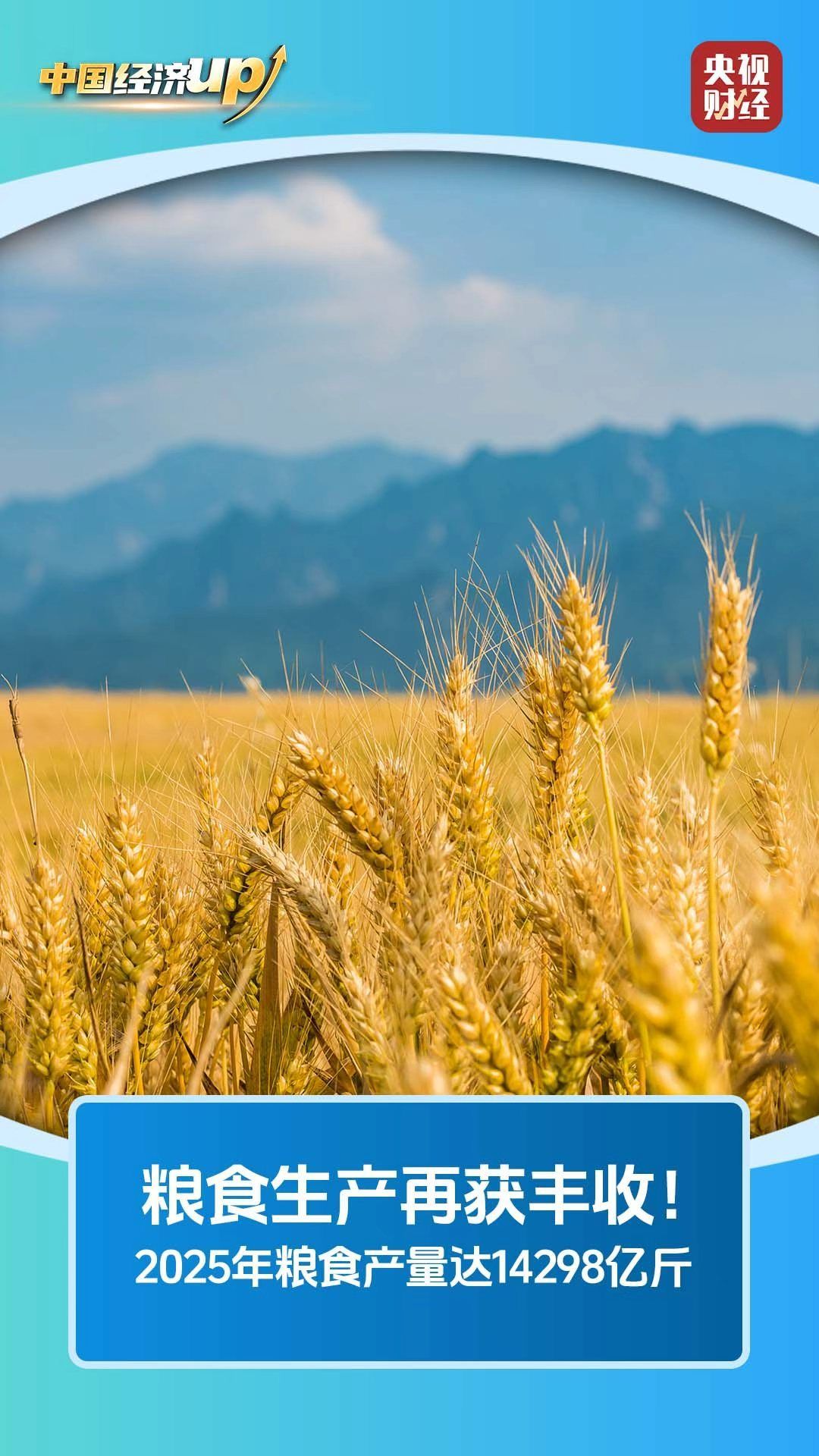 2025年,粮食生产再获丰收,“菜篮子”产品供给充裕。粮食产量达到14298亿斤、增产168亿斤,再创历史新高,连续两年稳定在1.4万亿斤以上。