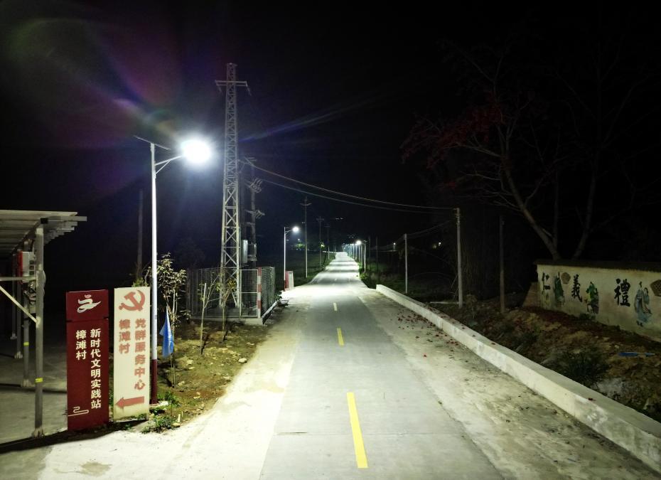 项目建设阶段,镇村干部紧密配合:镇干部在一线全程督导,破解占地协调、线路布设等难题;村干部紧盯进度、严把质量安全。工程投入资金24万余元,全员奋战十余天,251盏太阳能路灯全部安装就位,全面补齐了村庄重点区域照明短板。