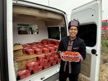 产业落地只是起点,产销畅通才是关键。为破解草莓销路难题,驻乡工作队提前布局、多维发力,构建起“线上+线下”融合的销售体系。线下主动对接清远帮扶单位、省职教城等,搭建稳定供货渠道;线上依托前期培育的“兴瑶农业”“瑶品汇”等新媒体账号,通过直播带货、短视频宣传等方式扩大影响力,打通物流配送链路。凭借草莓口感清甜、生态健康的品质优势,以及工作队精准高效的销路拓展,瑶安乡草莓园的产品一经上市便供不应求,收获市场广泛认可。