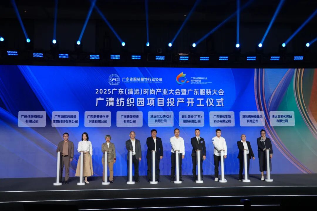 会上,广清纺织园管委会有关负责人推介了园区的区位交通、空间承载、成本优势以及精准的时尚产业政策。大会期间,举行了广清纺织园项目投产开工仪式。广州集美织造有限公司集美纺织科技产业园项目、广东美续生物科技有限公司生产项目等4个项目动工,清远市汇诚化纤有限公司年产涤纶预取向丝17万吨项目、戴世拉链(清远)快反中心项目、广东丽彦妆智造生物科技有限公司年产冻干粉1亿盒、面膜5000万盒和护肤品3000万盒建设项目等5个项目投产。