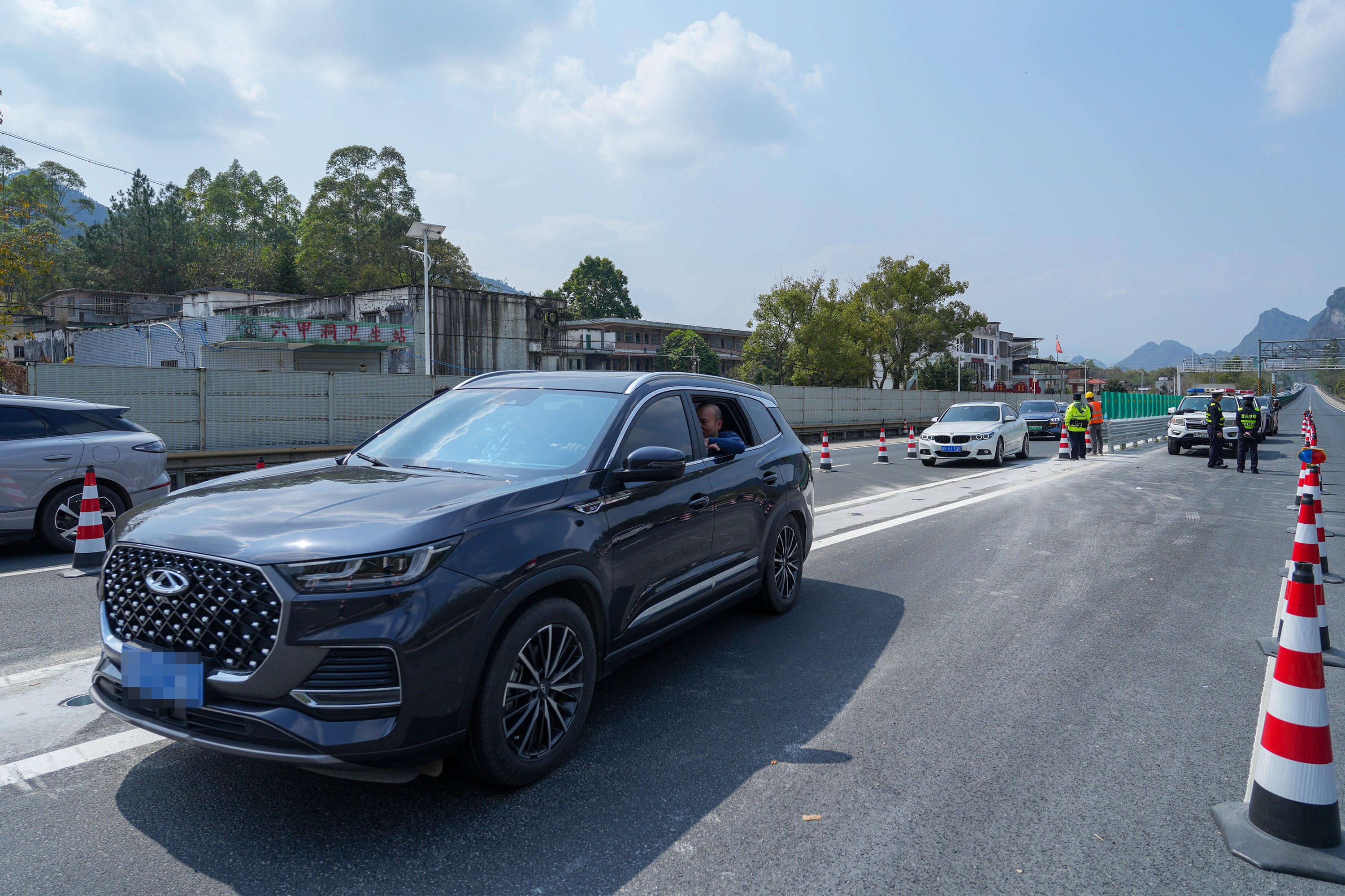 “本次‘借道通行’路段起点为六甲洞隧道,借道期间,交警全程护航保通,通过引导车流、控制车速,让车辆集中、安全、快速通过,确保大家平安返程。”现场执勤民警表示。