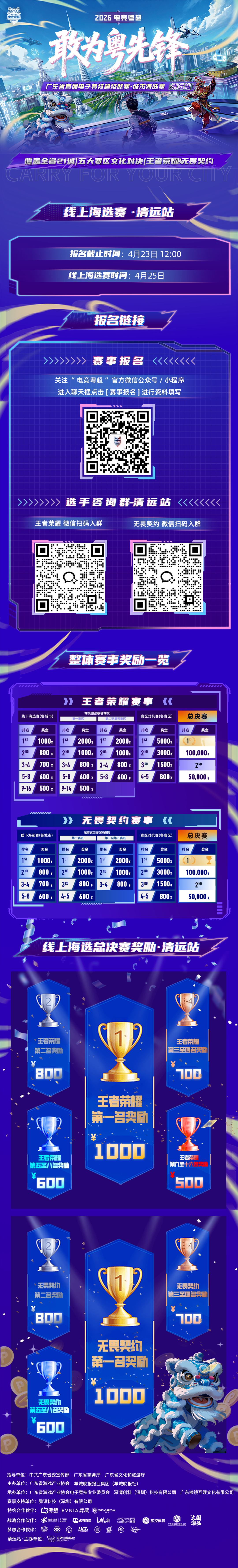 不要让你的天赋沉睡在屏幕后面,《王者荣耀》《无畏契约》双项目同步角逐。参与清远代表队选拔,为清远而战。报名通道已开启,诚邀电竞爱好者出战,代表这座城市,赢下属于你的荣耀!