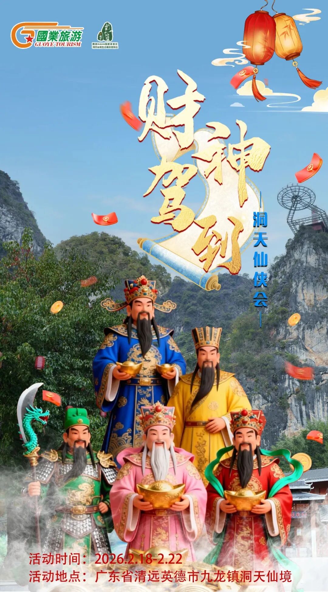 活动亮点:以“山水+仙侠+财神”为核心主题,深度融合洞天仙境的自然山水风貌与特色文化氛围,活动聚焦竹林舞台,串联快闪《山灵水秀》、巡游《洞天迎财》、才艺表演《仙侠风华》等特色环节,打造沉浸式文旅盛宴。