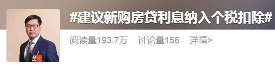 他建议,将纳税人本人或配偶在中国境内购房的商业及公积金贷款利息纳入个人所得税专项扣除项目,按照每月3000元的标准定额扣除,扣除期限最长不超过240个月,从而降低购房者的贷款压力,提振改善性住房需求。