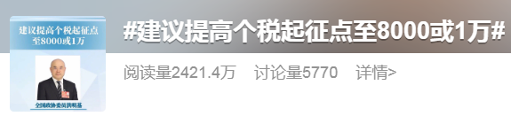 他建议,将起征点提高至每月8000-10000元,并同步优化税率结构。提高起征点是直接增加可支配收入、提振消费、扩大内需的有效举措,也是落实“补低、扩中、调高”收入分配导向的务实选择。