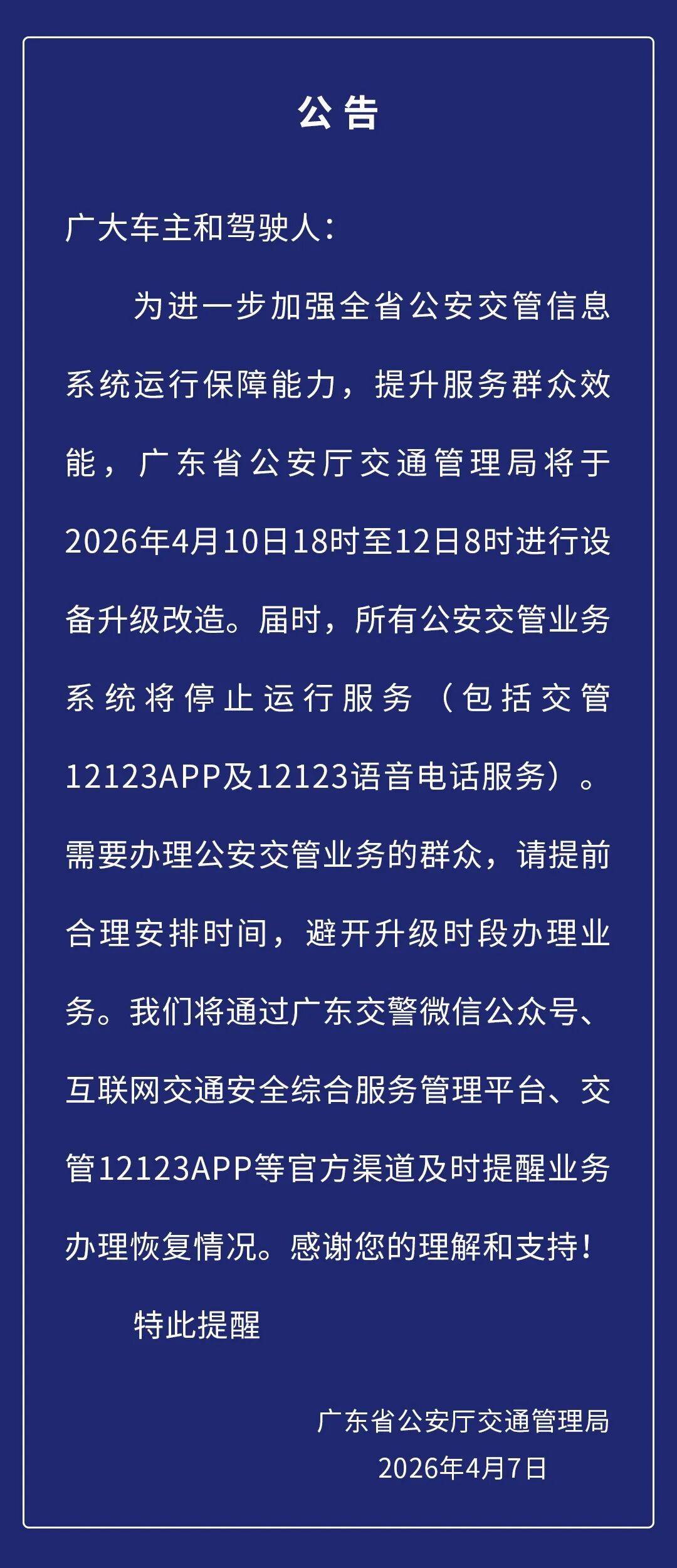 @清远司机 4月10日18时起,12123暂停服务!