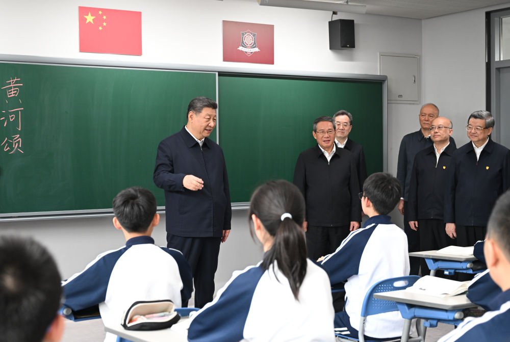 3月23日,中共中央总书记、国家主席、中央军委主席习近平在河北雄安新区考察,并主持召开深入推进雄安新区高质量建设和发展座谈会。这是23日上午,习近平在北京四中雄安校区考察时,走进教室同师生亲切交谈。新华社发(盛佳鹏 摄)