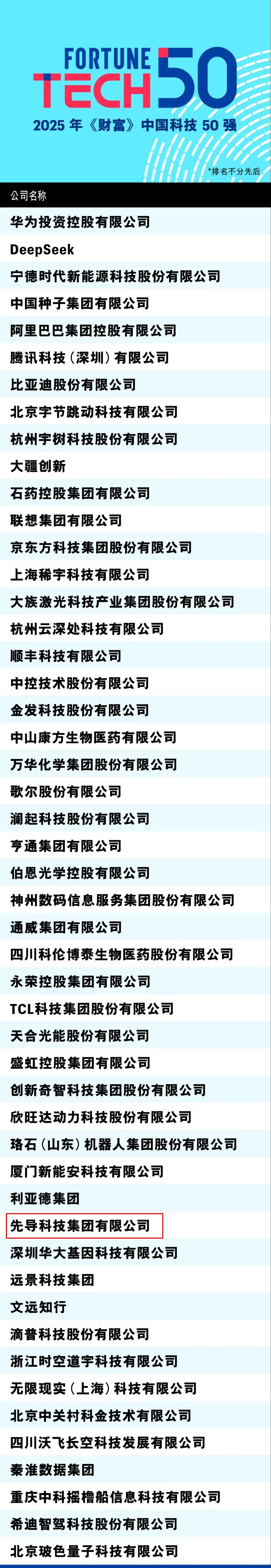 8月21日,2025年《财富》中国科技50强正式发布,先导科技集团成功入选。该榜单涵盖人工智能、高端制造、新能源及新材料等多个创新领域,旨在挖掘诞生于中国且正在影响世界的科技公司。这是先导科技集团继蝉联《财富》中国500强后,再度荣登《财富》系列榜单。
