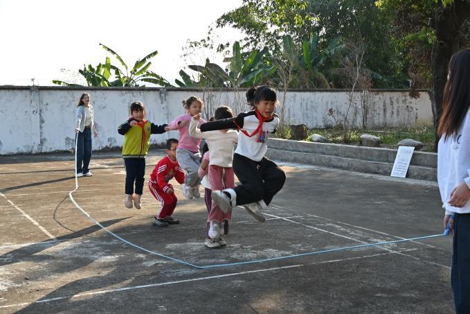 教工党员、大学生入党积极分子与小学生们进行体育互动。通讯员供图