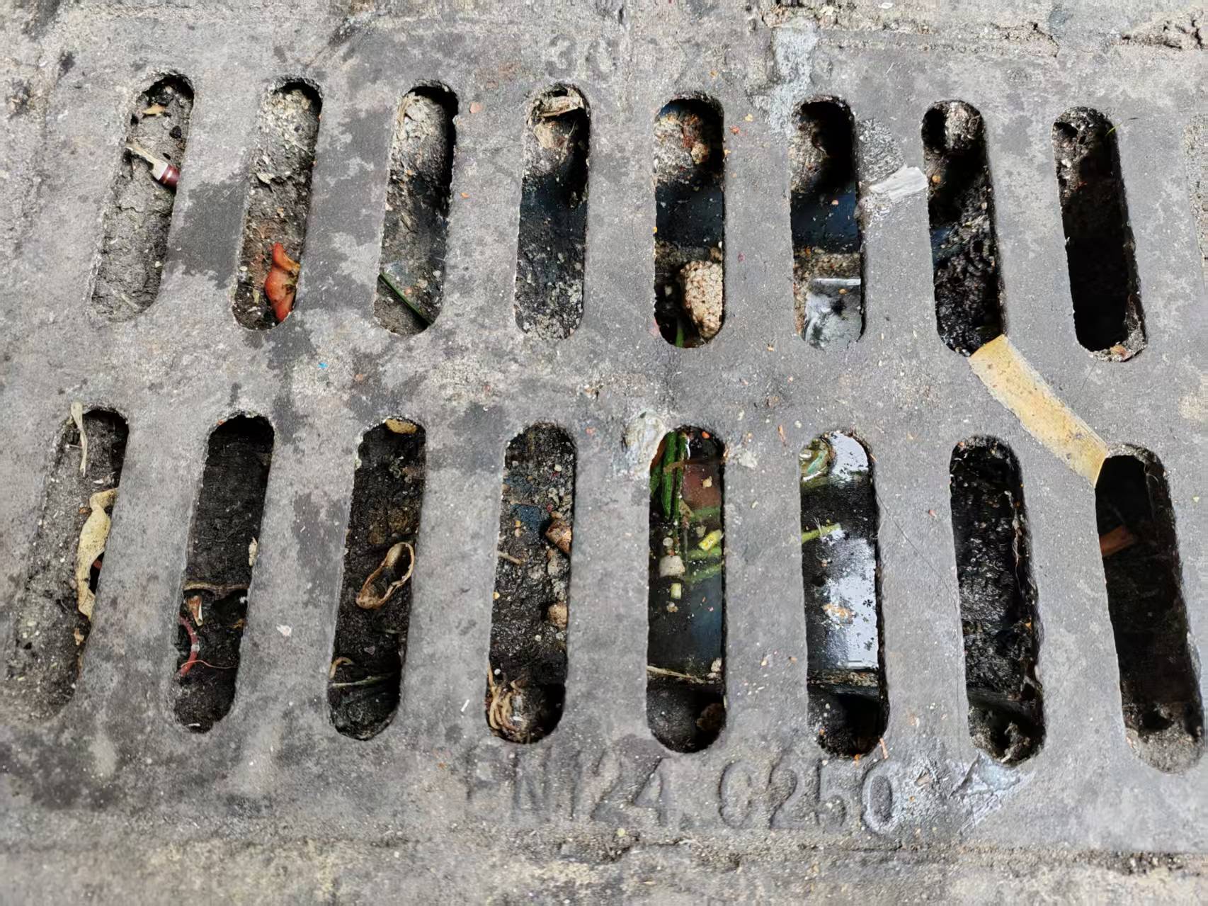 目前虽然地面是干的,但是透过沙井盖可以看到,下水道的水是满的,并没有顺畅排走。“一下雨都会水浸,根本都排不走。”住在这里的居民说。