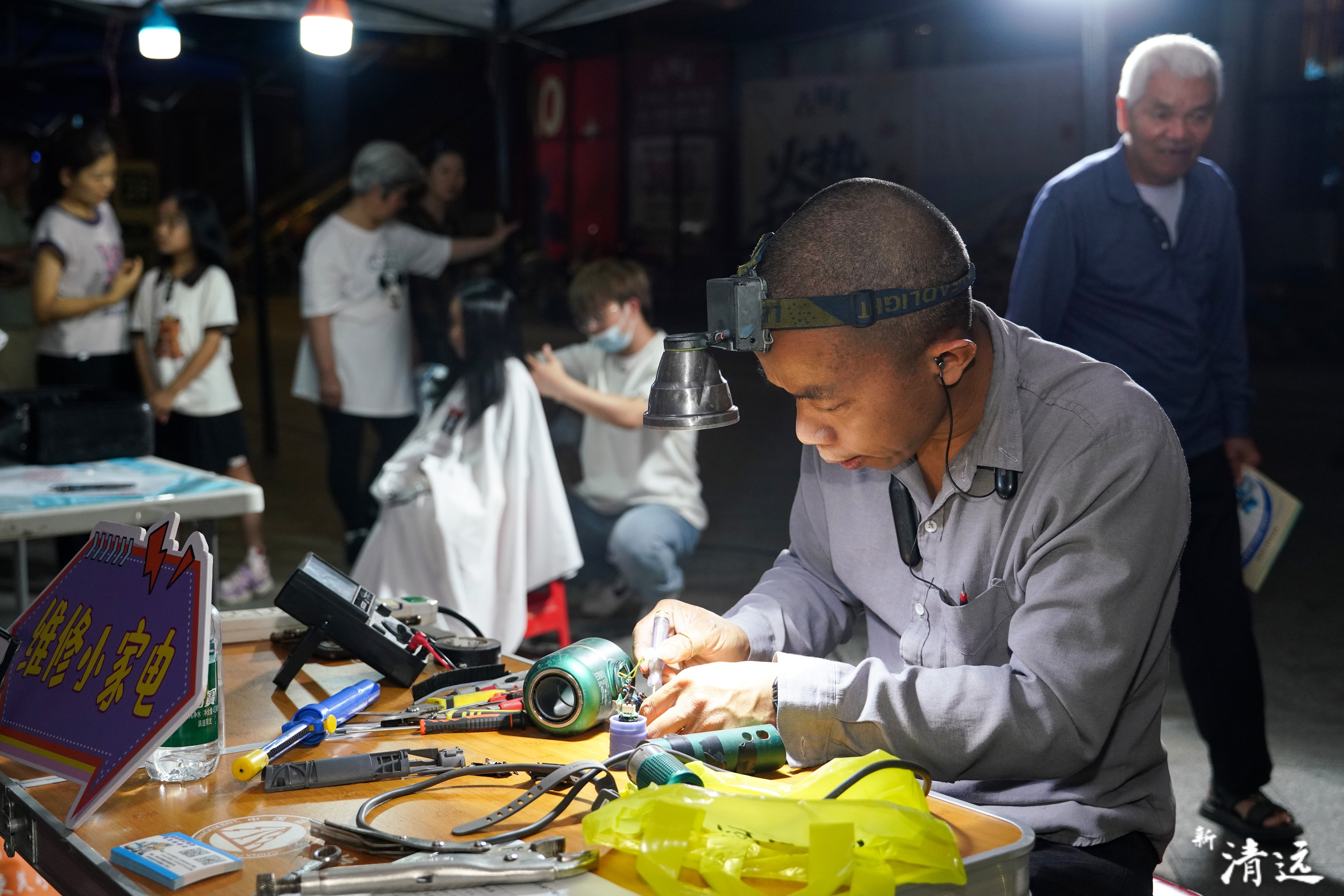活动现场有“小修小补”便民服务点位,摊主在为市民维修小家电。清远日报记者 刘淑芳 摄