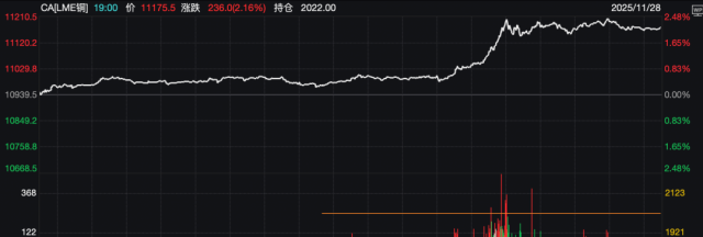 铜价亦创历史新高。行情数据显示,LME铜盘中一度上涨近2.5%,达到每吨11210.50美元,触及纪录新高。