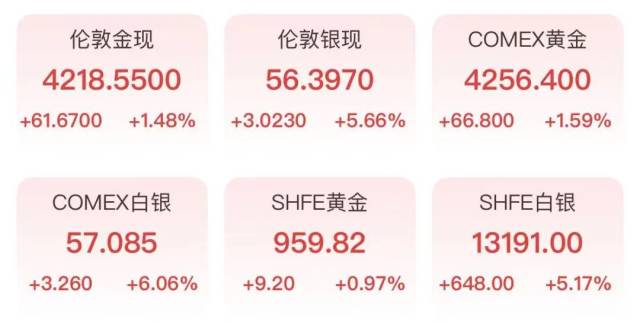 28日晚间至29日凌晨,国际金价持续走高,现货黄金、COMEX黄金价格均重新站上4200美元/盎司。截至29日上午,现货黄金报4218.55美元/盎司,COMEX黄金期货同步上涨,报4256.4美元/盎司。