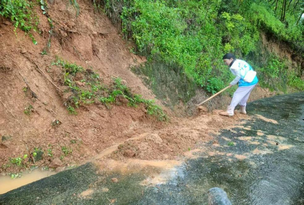 2025年6月17日,受强降雨天气影响,阳山县七拱镇龙脊村辖区内部分路段出现山体滑坡、泥土淤积等安全隐患。为切实保障村民出行安全与生命财产安全,唐宝银闻“汛”而动,对村内边坡易发生地质灾害的区域进行排查。在巡查村道沿线时,发现一处山体出现小型滑坡,大量泥土堆积路面,不仅阻碍村民正常通行,还存在二次滑坡的安全风险。唐宝银第一时间做好现场警示,对滑坡路段进行清理疏通,同步上报村委会。随后,唐宝银冒雨深入村民家中,逐户开展防汛安全宣传与隐患排查。每到一户,都仔细查看房屋墙体、屋顶、排水等情况,耐心向村民讲解汛期防灾避险知识,提醒村民密切关注天气变化,注意防范山体滑坡、房屋漏雨、积水内涝等风险,遇到险情及时联系村委会。