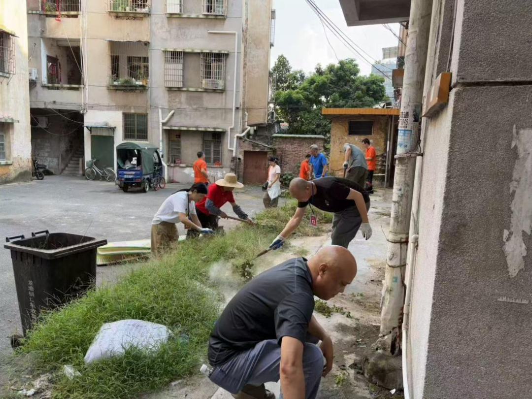 针对社区公共区域杂草易长、蚊虫易滋生问题,邓国杏主动牵头,组织社区工作人员、志愿者开展杂草清除专项行动,对街巷角落、墙体周边的杂草进行清理,同时向居民宣传环境整治的意义,引导大家主动参与维护,自己的家园自己爱。