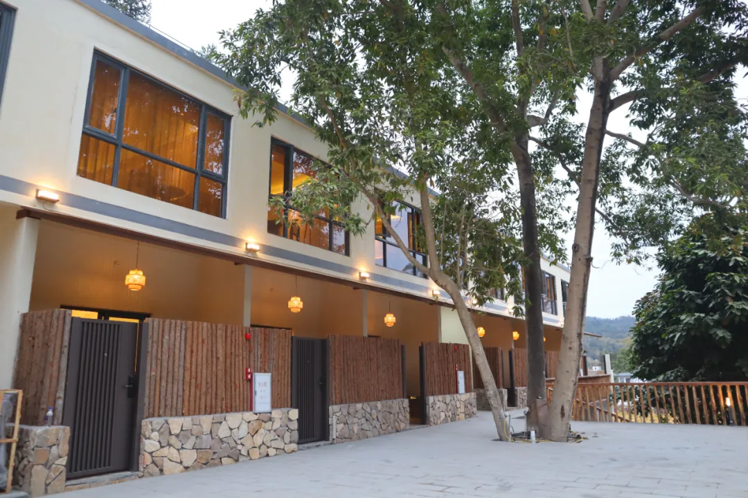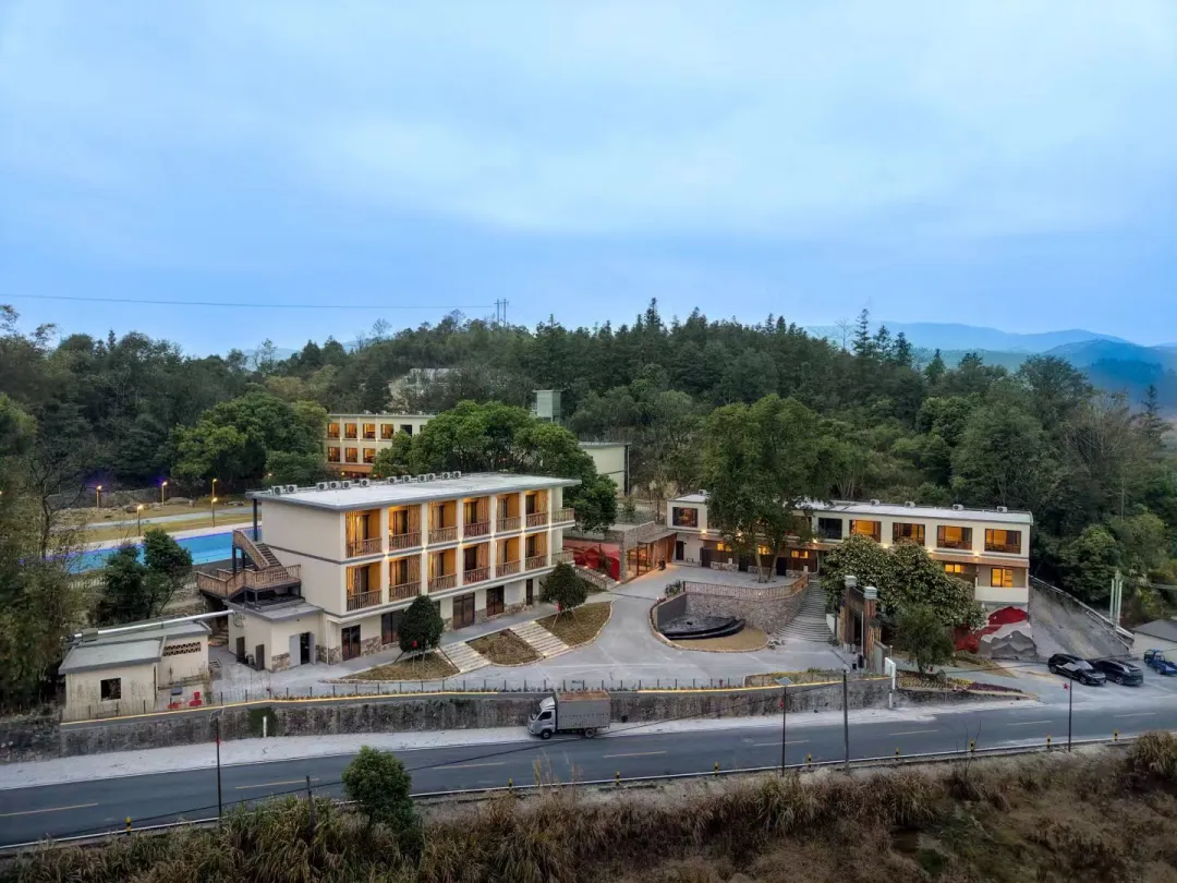 民宿隐秘在山野之中,设有17间套房,29个大床位。民宿设施设备齐全,包括餐厅、会议室、篮球场、游泳池和可充电停车场。