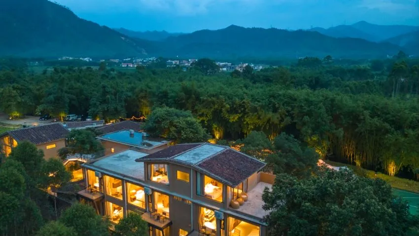 民宿依山而建,傍水而居,位于风景秀丽的山水之间,周边环绕着郁郁葱葱的树木,打造出了一座座错落有致的建筑。站在民宿的阳台上,可以俯瞰太和古洞旅游风景区,将美景尽收眼底。民宿共有34间风格各异的客房,庭院与山景“对话”,山景辽阔,尽享私密,是观山、静思的绝佳处所。