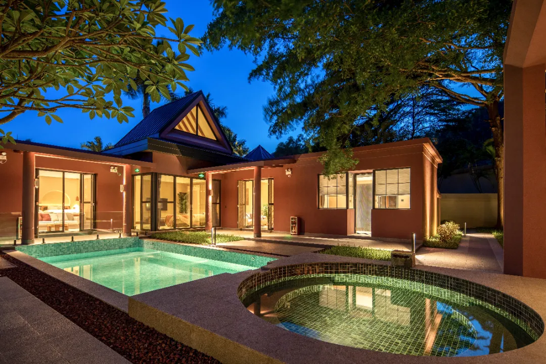 酒店以摩洛哥风格为灵感,依山势而建,层叠错落有致。拥有泉清谷独栋别墅20栋、森林墅独栋套房26套,每套房间都带有独立温泉泡池。