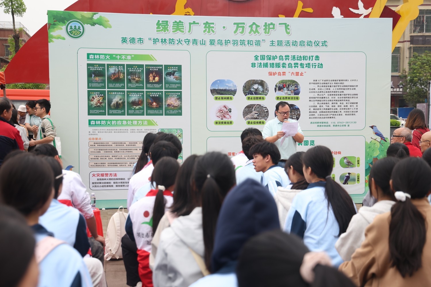 春光作序,万物和鸣。4月2日,英德市“护林防火守青山 爱鸟护羽筑和谐”主题活动启动仪式在浛洸镇文化广场举行。英德市林业局、市府办、市公安局等相关单位负责人,各镇(街)分管领导,以及学生护林员代表、群众代表等约400人参加活动,共赴生态之约,共绘绿美英德新画卷。