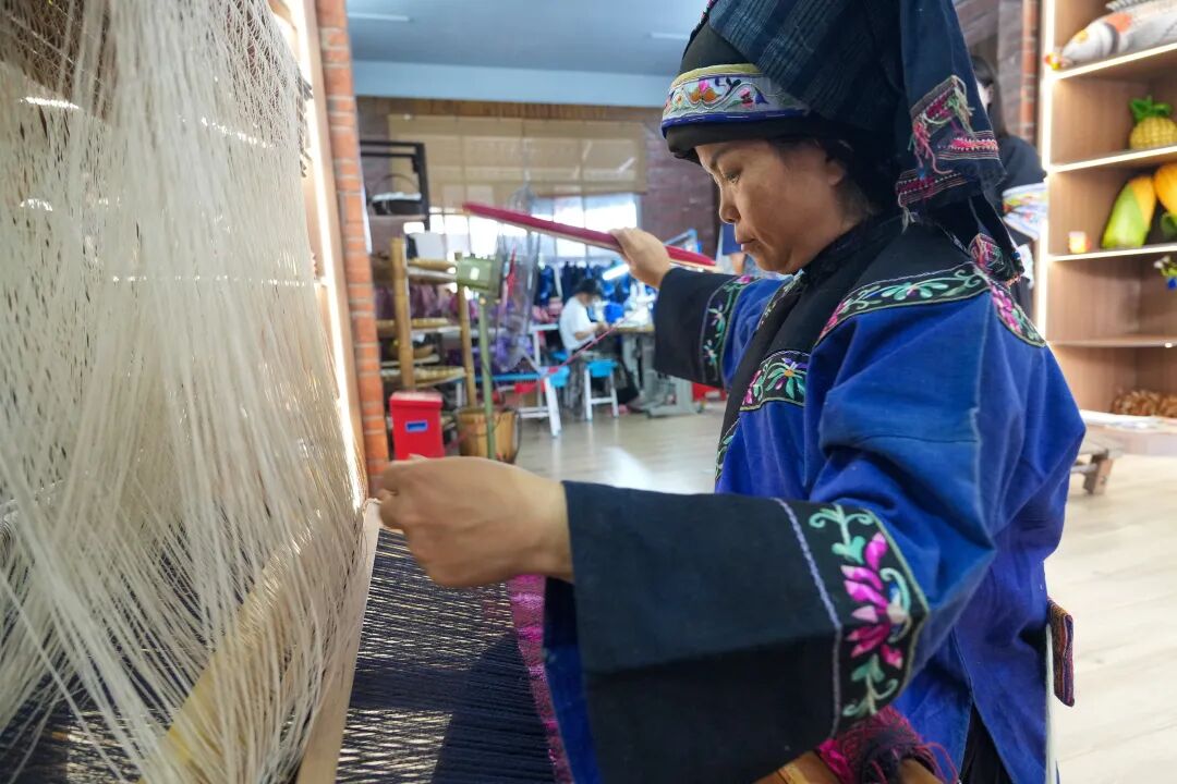 合作社还通过联农带农惠农推动壮锦产品的规模化、产业化发展,采用“固定手艺人+分发订单”模式,成功吸收318户村民加入壮锦技艺队伍,帮扶带动近1000人实现家门口就业。截至2026年1月,合作社带动356户1028人就业,最高年收入5万元。